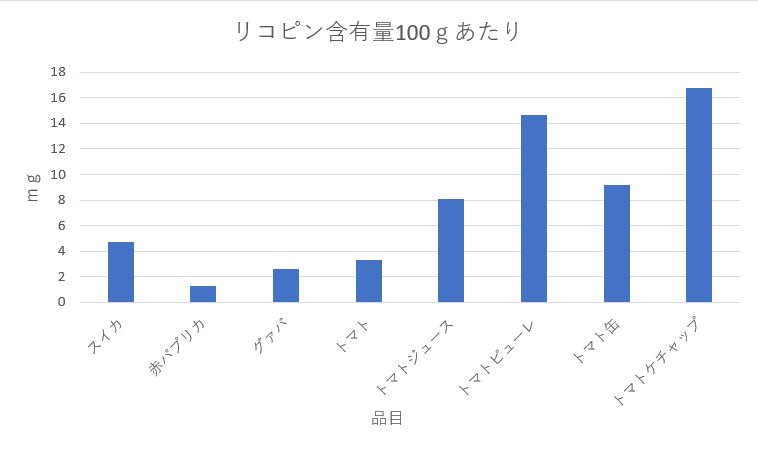 トマトは加熱加工することでリコピンが大幅に増えるということがわかります。